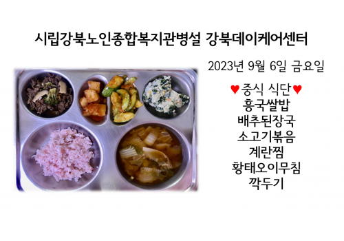 [데이케어] 2023년 9월 6일(수) 중식 식단
