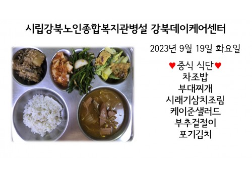 [데이케어] 2023년 9월19일(화) 중식 식단