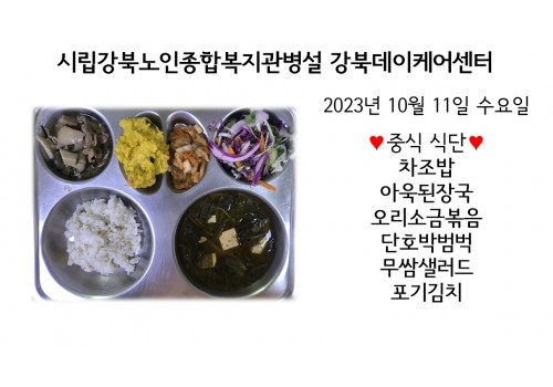 [데이케어] 2023년 10월11일(수) 중식 식단