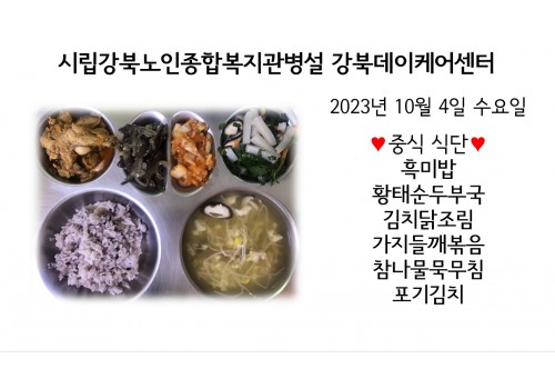 [데이케어] 2023년 10월 4일(수요일) 중식 식단