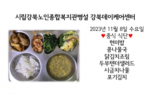 [데이케어] 2023년 11월 8일(수) 중식 식단