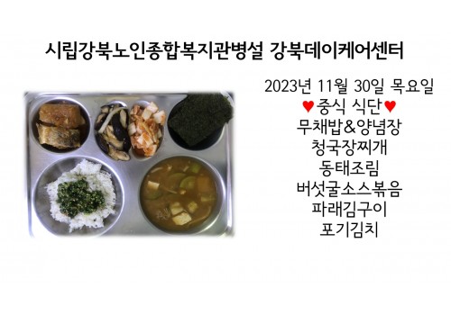 [데이케어] 2023년 11월 30일(목) 중식 식단