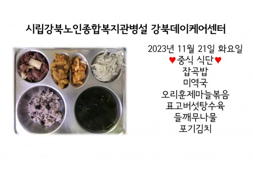 [데이케어] 2023년 11월21일(화) 중식 식단
