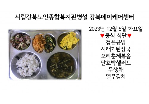 [데이케어] 2023년 12월 5일 (화) 중식 식단