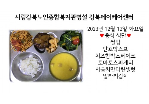 [데이케어] 2023년 12월 12일(화) 중식 식단