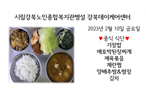 [데이케어] 2023년 2월 10일(금) 중식식단