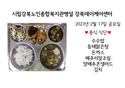 [데이케어] 2023년 2월17일(금) 중식식단