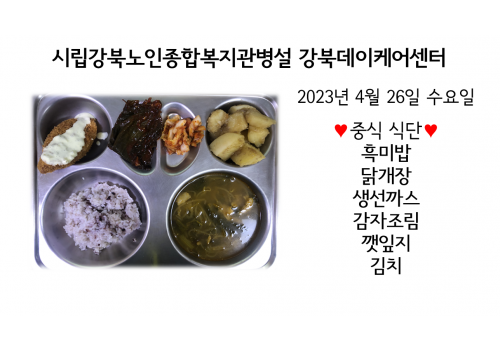 [데이케어] 2023년 4월26일(수) 중식 식단