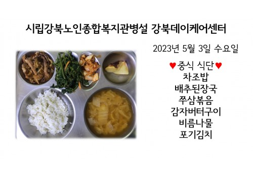 [데이케어] 2023년 5월3일(수) 중식 식단