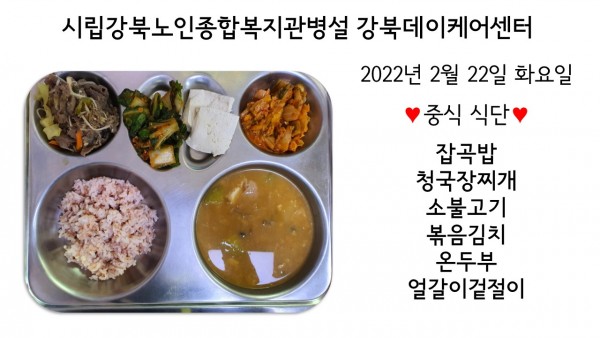 2022년 2월 22일(화) 중식 식단입니다. (클릭하면 사진을 더 크게 보실 수 있습니다.)
