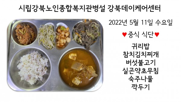 2022년 5월 11일(수) 중식 식단입니다. (클릭하면 사진을 더 크게 보실 수 있습니다.)