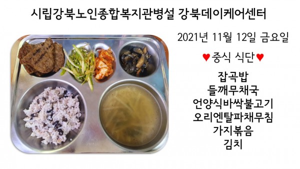 2021년 11월 12일(금) 중식 식단입니다. (클릭하면 사진을 더 크게 보실 수 있습니다.)