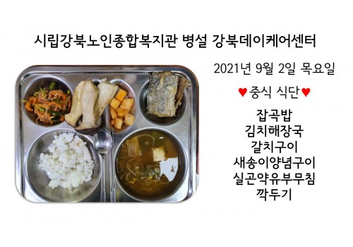 [데이케어] 2021년 9월 2일(목) 중식 식단