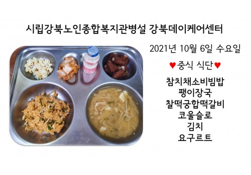 [데이케어] 2021년 10월 6일(수) 중식 식단