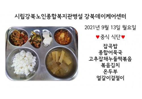 [데이케어] 2021년 9월 13일(월) 중식 식단