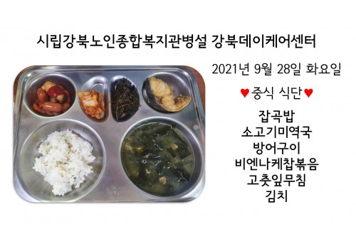 [데이케어] 2021년 9월 28일(화) 중식 식단