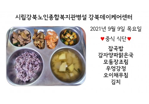 [데이케어] 2021년 9월 9일(목) 중식 식단