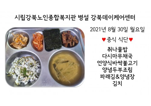 [데이케어] 2021년 8월 30일(월) 중식 식단