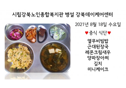 [데이케어] 2021년 8월 18일(수) 중식 식단