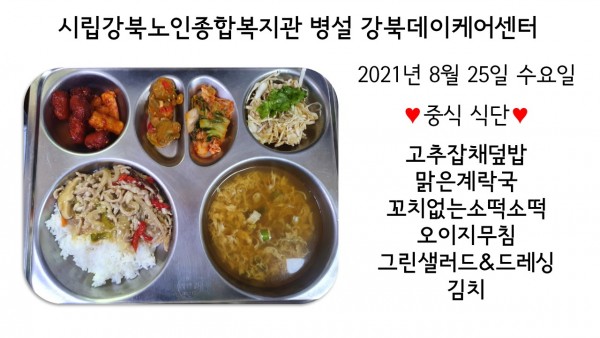 2021년 8월 25(수) 중식 식단입니다. (클릭하면 사진을 더 크게 보실 수 있습니다.)