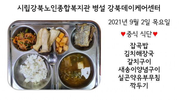 2021년 9월 2(목) 중식 식단입니다. (클릭하면 사진을 더 크게 보실 수 있습니다.)