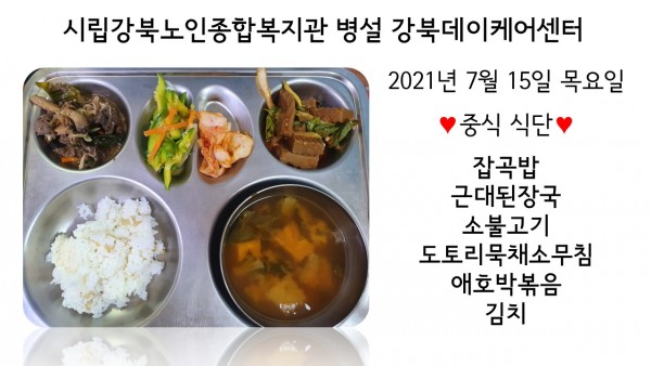 2021년 7월 15일(목) 중식 식단입니다. (클릭하면 사진을 더 크게 보실 수 있습니다.)