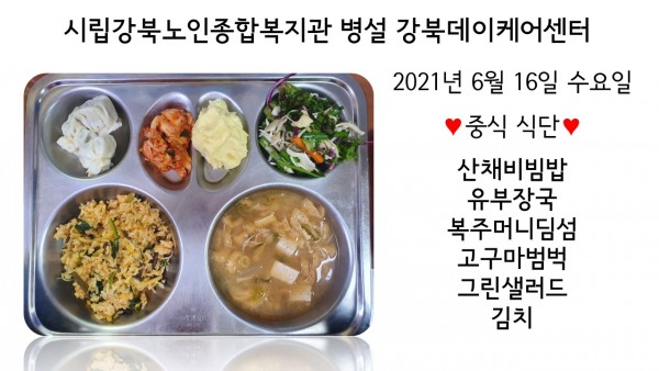 2021년 6월 16일(수) 중식 식단입니다. (클릭하면 사진을 더 크게 보실 수 있습니다.)