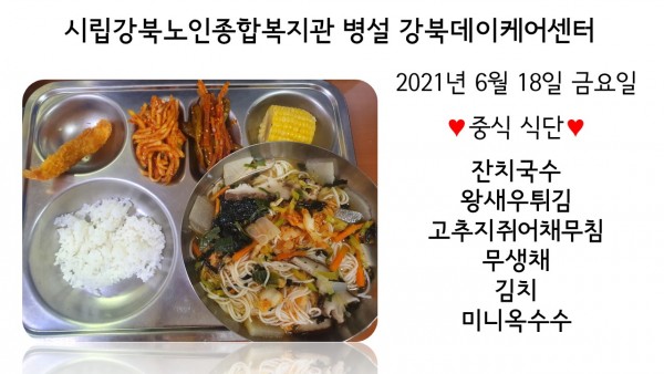 2021년 6월 18일(금) 중식 식단입니다. (클릭하면 사진을 더 크게 보실 수 있습니다.)