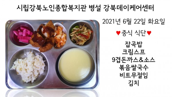 2021년 6월 22일(화) 중식 식단입니다. (클릭하면 사진을 더 크게 보실 수 있습니다.)