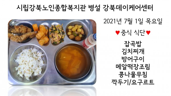 2021년 7월 1일(목) 중식 식단입니다. (클릭하면 사진을 더 크게 보실 수 있습니다.)