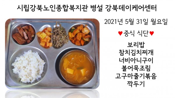 2021년 5월 31(월) 중식 식단입니다. (클릭하면 사진을 더 크게 보실 수 있습니다.)