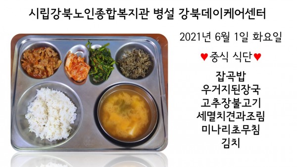 2021년 6월 1(화) 중식 식단입니다. (클릭하면 사진을 더 크게 보실 수 있습니다.)