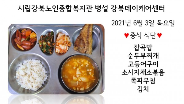 2021년 6월 3(목) 중식 식단입니다. (클릭하면 사진을 더 크게 보실 수 있습니다.)