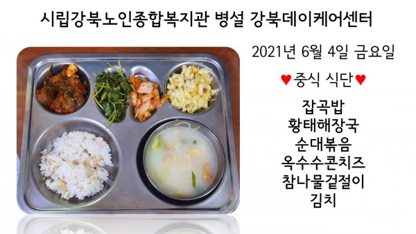 2021년 6월 4일(금) 중식 식단입니다. (클릭하면 사진을 더 크게 보실 수 있습니다.)
