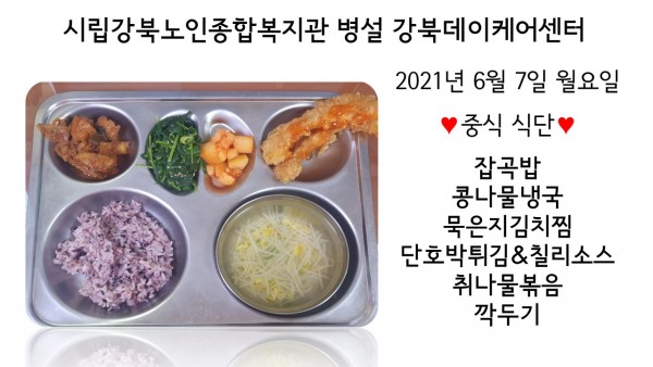 2021년 6월 7(월) 중식 식단입니다. (클릭하면 사진을 더 크게 보실 수 있습니다.)