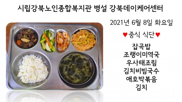 2021년 6월 8일(화) 중식 식단입니다. (클릭하면 더 크게 보실 수 있습니다)