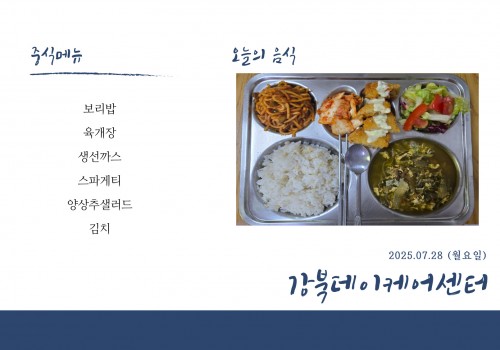 [데이케어] 2025년 7월 28일(월) 중식·간식·석식 식단