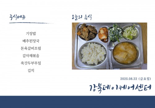 [데이케어] 2025년 8월 22일(금) 중식·간식·석식 식단