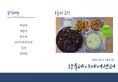 [데이케어] 2025년 8월 11일(월) 중식·간식·석식 식단