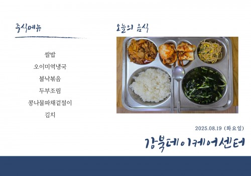 [데이케어] 2025년 8월 19일(화) 중식·간식·석식 식단