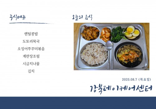 [데이케어] 2025년 8월 7일(목) 중식·간식·석식 식단