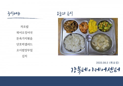[데이케어] 2025년 8월 5일(화) 중식·간식·석식 식단