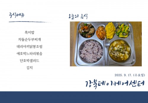 [데이케어] 2025년 9월 17일(수) 중식·간식·석식 식단