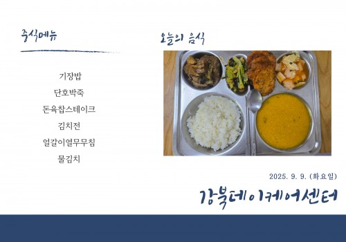 [데이케어] 2025년 9월 9일(화) 중식·간식·석식 식단