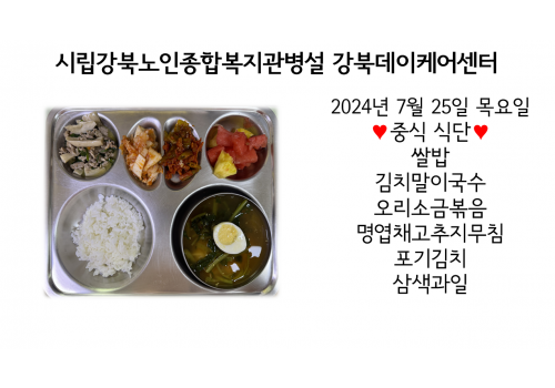 [데이케어] 2024년 7월 25일(목) 중식·간식·석식 식단