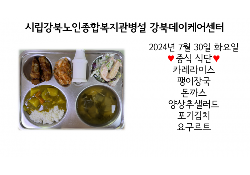 [데이케어] 2024년 7월 30일(화) 중식·간식·석식 식단