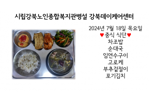[데이케어] 2024년 7월 18일(목) 중식·간식·석식 식단