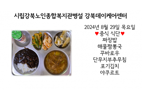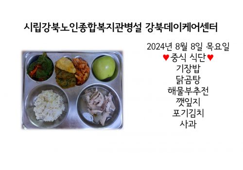 [데이케어] 2024년 8월 8일(목) 중식·간식·석식 식단