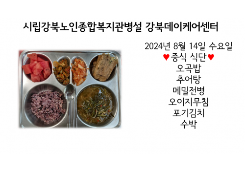 [데이케어] 2024년 8월 14일(수) 중식·간식·석식 식단