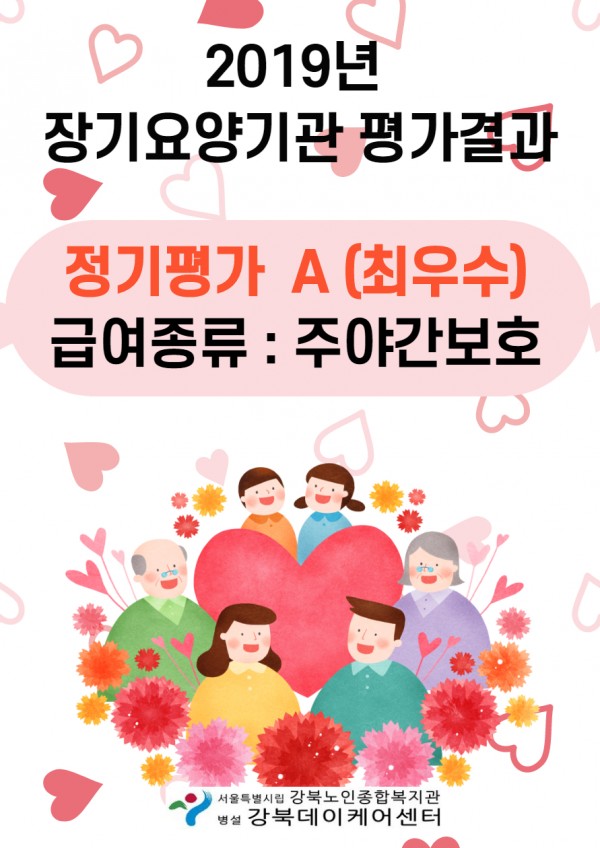 본 센터에서는 2019년 장기요양기관 평가결과 A(최우수) 등급을 받았습니다.